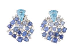 132. Pendientes de ojo de perdiz con un brillante central orlado de zafiros calibrados
