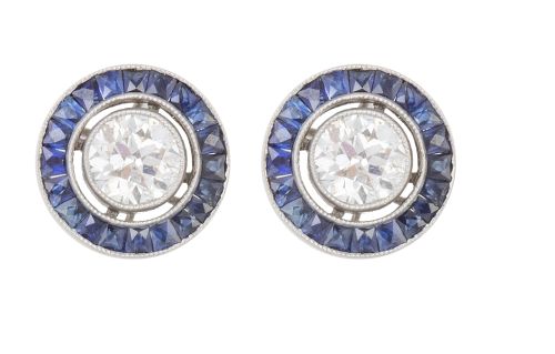 Pendientes de ojo de perdiz con un brillante central orlado de zafiros calibrados