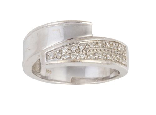 190. Sortija con frente asimétrico de oro liso y brillantes