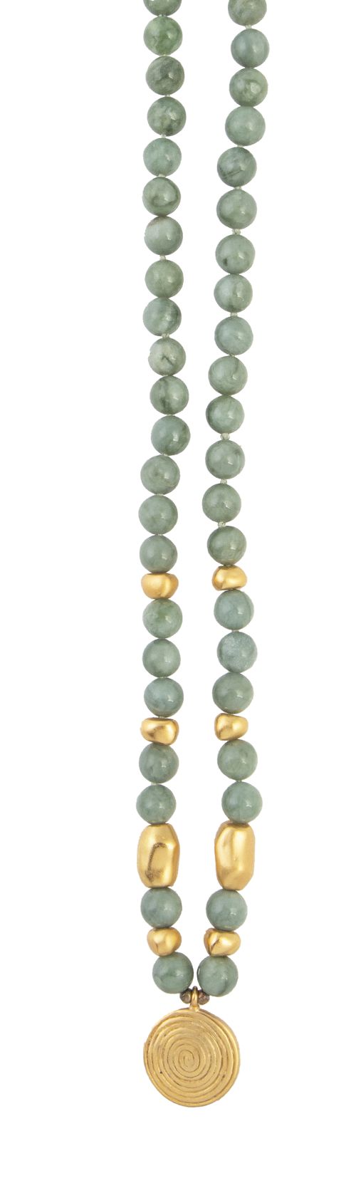 Collar de jade verde con entrepiezas y centro de plata chapada en oro