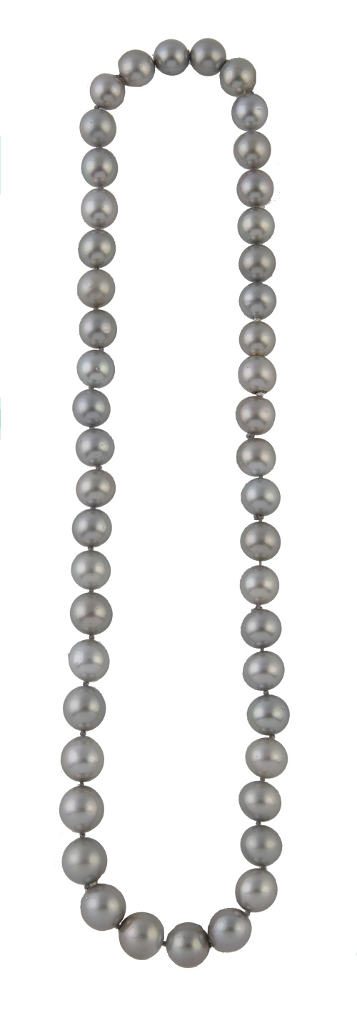 244. Collar de perlas grises de Tahití con tamaño ligeramente graduado hacia el centro y cierre oculto