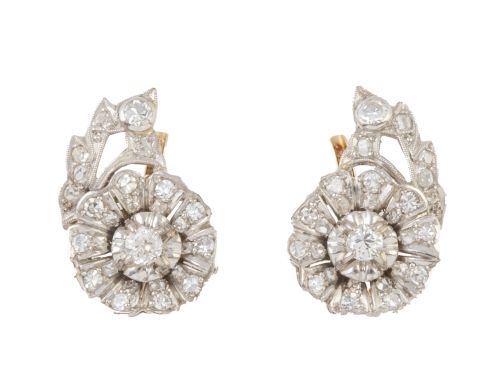Home / SUBASTA MARZO 2025 / Pendientes flor de brillantes años 50 con hojita calada en