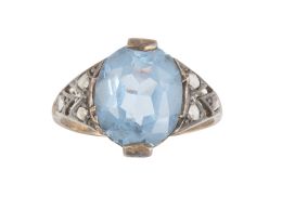 Home / SUBASTA MARZO 2025 / Sortija ancha con zafiro oval central flanqueado por banda