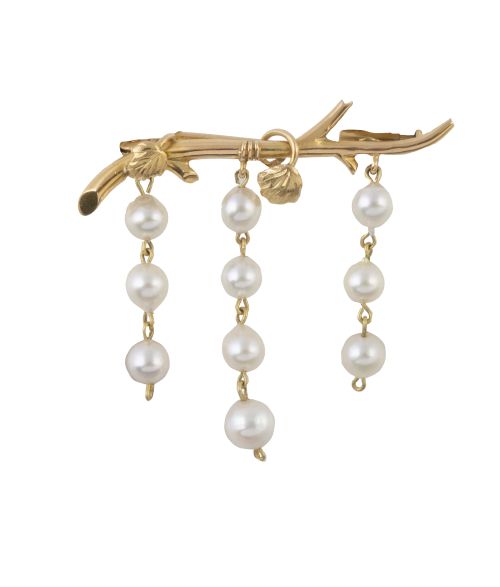 Broche rama con tres hilos de perlas colgantes