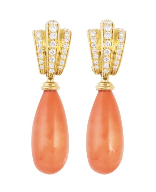 Home / SUBASTA MARZO 2025 / Pendientes largos con perillas de coral colgantes de tres b