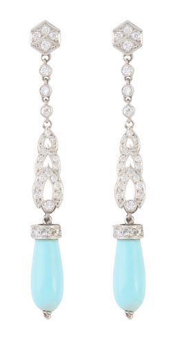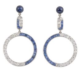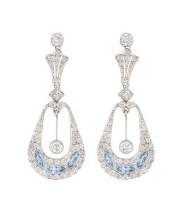 274. Pendientes flor de diamantes tabla en centro y pétalos, con orla de pétalos exteriores de pavé de brillantes