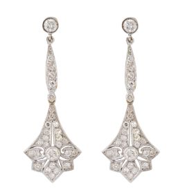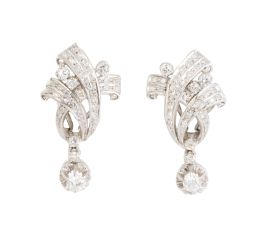 Pendientes rosetón de brillantes con centros de 0,80 ct aprox cada uno, orlados de brillantes, que penden de chatón de brillante