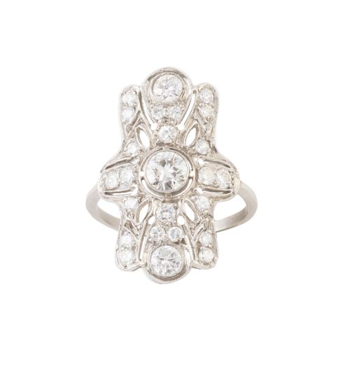 Home / SUBASTA MARZO 2025 / Sortija lanzadera de brillantes estilo Art-Decó con remates