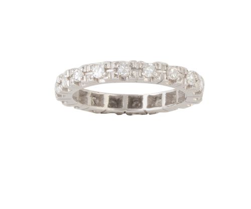 336. Sortija alianza completa de brillantes en marcos cuadrangulares