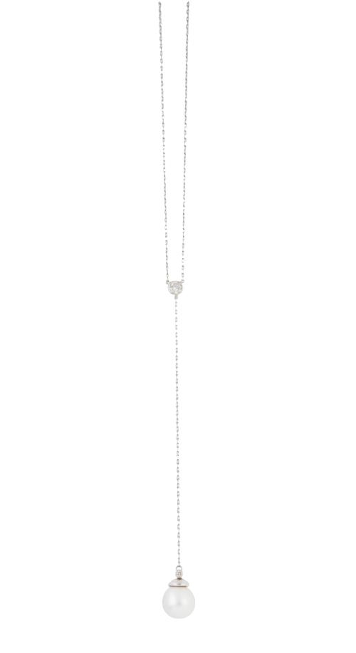 339. Pendentif largo de perla australiana colgante de chatón de brillante en cadena fina de platino