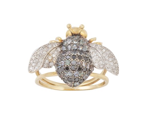 Home / SUBASTA MARZO 2025 / Sortija con mosca de brillantes negros y blancos