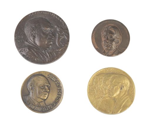 - Dos medallas conmemorativas del bicentenario de la fundación de la Real Academia de Historia. Presenta en el anverso tres bustos masculinos de perfil.