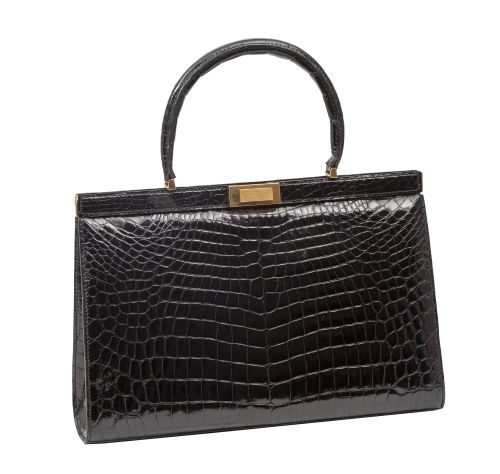 Home / SUBASTA MARZO 2025 / Bolso de piel de cocodrilo color negro con cierre dorado