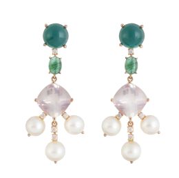 Pendientes con diseño de flor en oro bicolor adornados con perla cultivada central