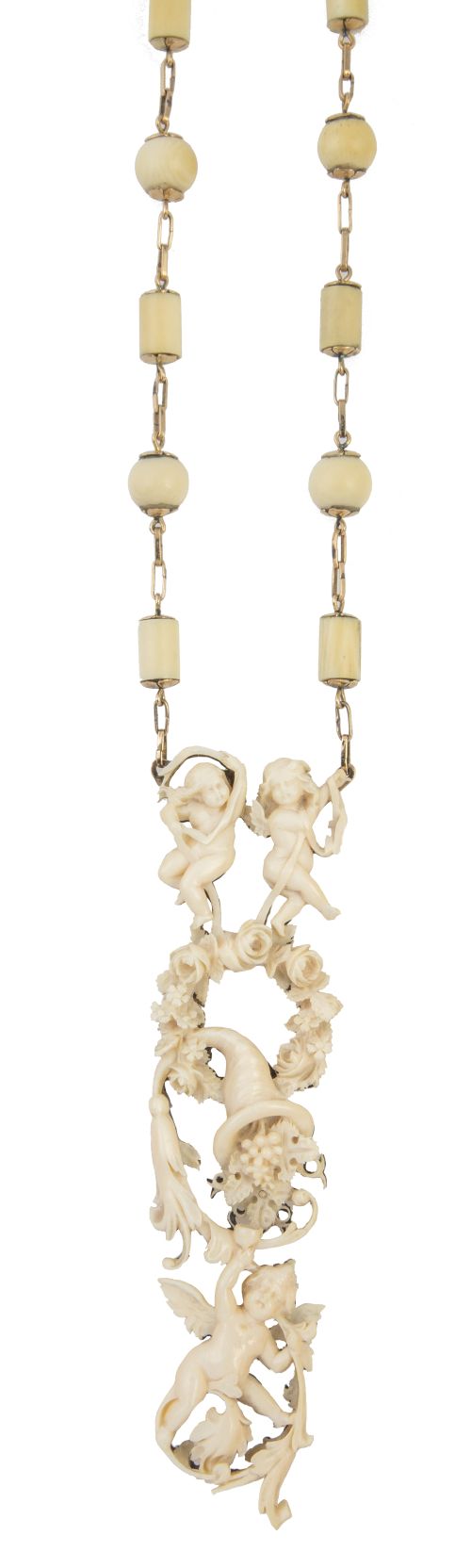 Home / SUBASTA MARZO 2025 / Collar S. XIX con placa tallada con angelotes, guirnaldas y