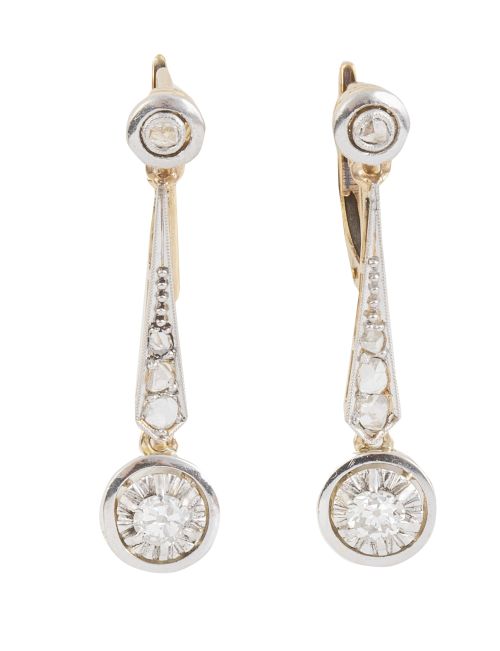 Home / SUBASTA MARZO 2025 / Pendientes largos Art Decó con dos chatones de brillantes e