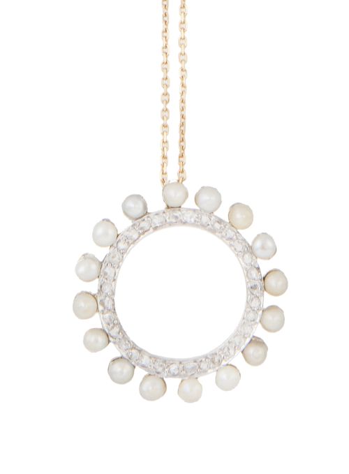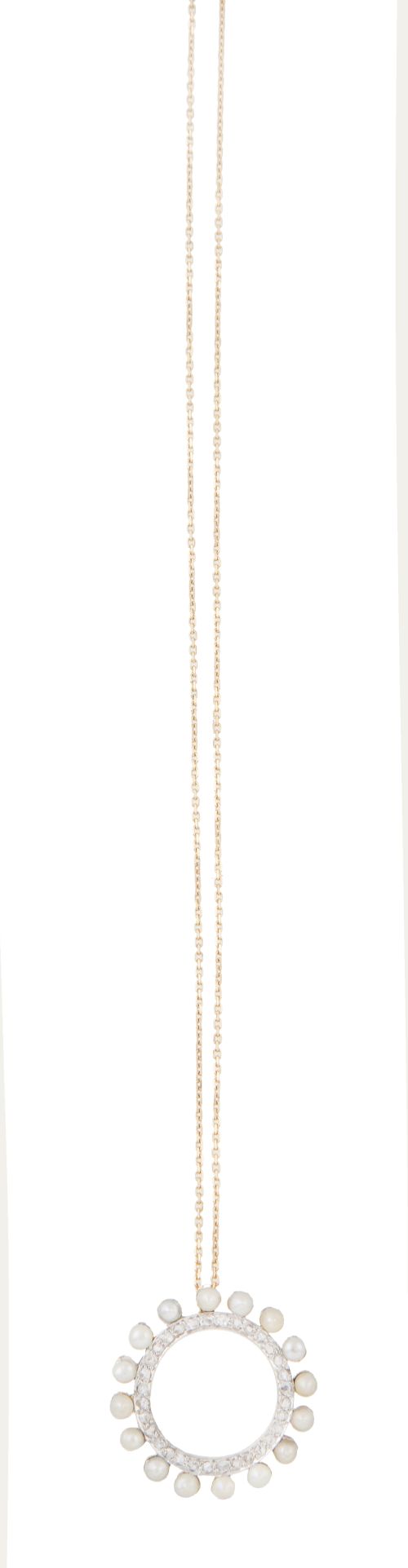 Colgante circular de pp. S. XX con aro de diamantes orlado de perlas