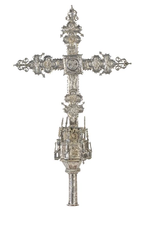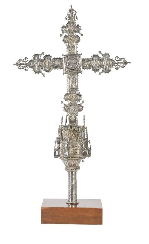 Home / SUBASTA MARZO 2025 / Cruz procesional de plata en su color. Con marcas."BGO. PLA