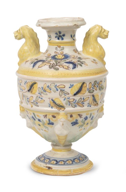 1174. Jarrón de cerámica esmaltada en amarillo, azul y verde.
