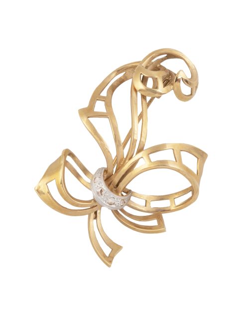 Broches chevalière en forma de lazo con decoración calada atado con arco de diamantes