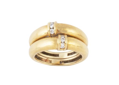 118. Sortija con dos aros decorados con línea central de trío de brillantes engastados en carril
