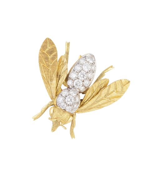 137. Broche abeja de oro y brillantes, con alas decoradas con decoración grabada y mate y cuerpo cuajado de brillantes