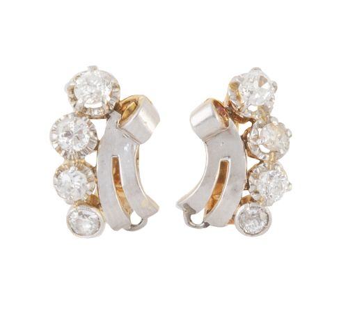 138. Pendientes retro años 40 con diseño de cinta ondulada y línea curva de brillantes