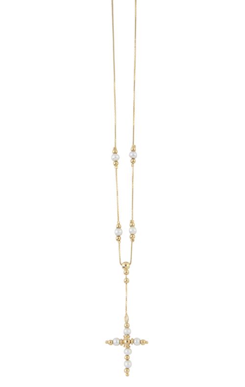 Collar con cruz colgante de oro y perlas combinados