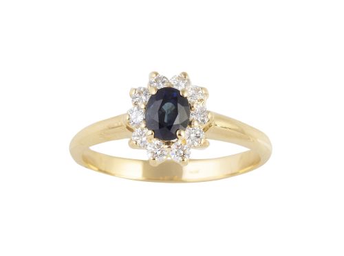 Sortija con zafiro central oval orlado de brillantes