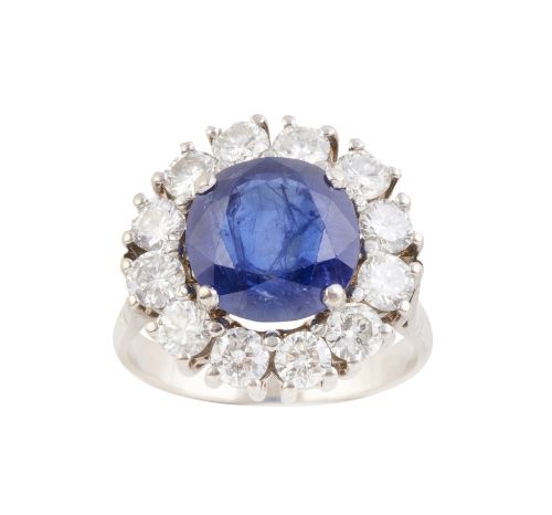 199. Sortija con zafiro Burma oval central orlado de brillantes