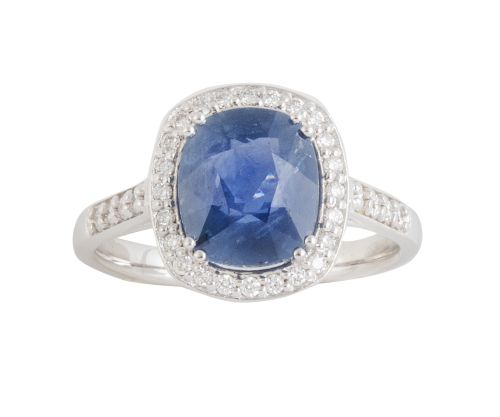 225. Sortija con zafiro Burma central talla cojín de 3,25 ct aprox orlado de brillantes