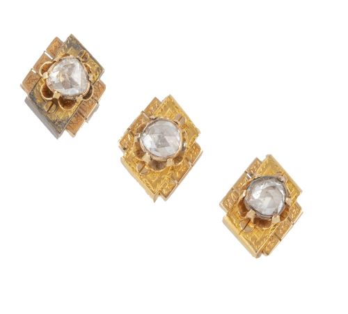 24. Botonadura S. XIX formada por tres botones romboidales con centro de diamantes de talla rosa