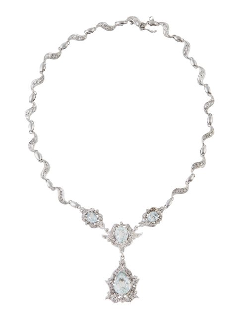 Home / SUBASTA DE JUNIO 2025 / Collar de aguamarinas y brillantes, con frente formado por