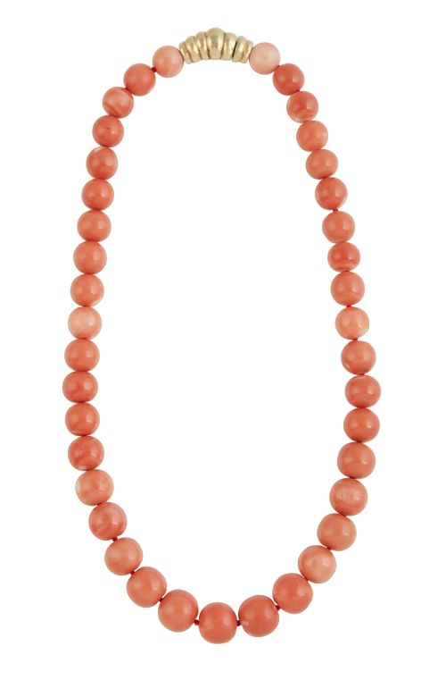 Home / SUBASTA DE JUNIO 2025 / Collar de cuentas de coral de tamaño creciente hacia el cen