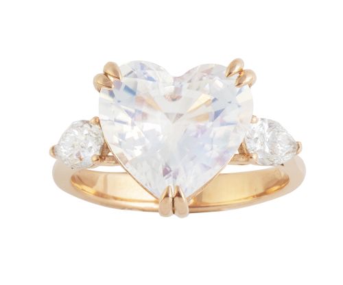 276. Sortija con piedra luna de 4,51 ct flanqueada por diamantes talla pera