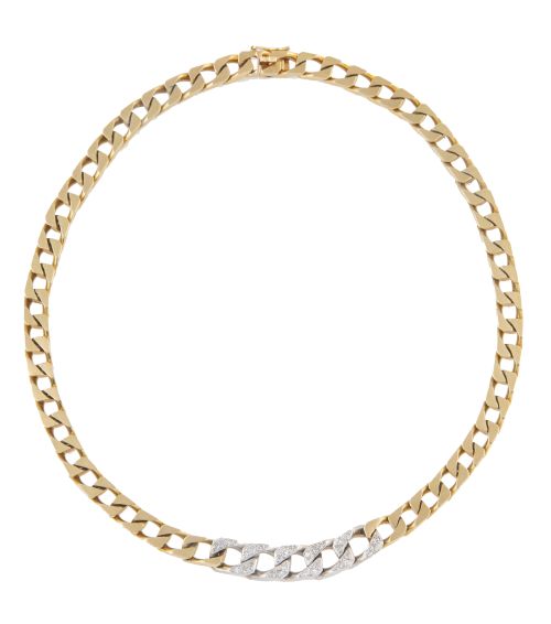 278. Collar de eslabones barbados planos con brillantes en los cinco eslabones centrales