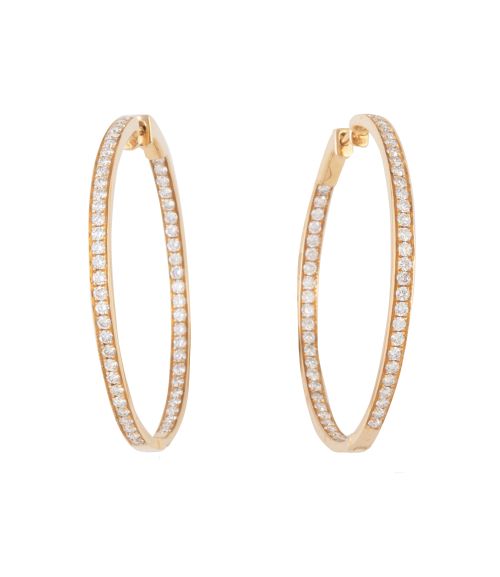 Pendientes criollas circulares con frente de brillantes y brillantes en parte vista del interior del aro
