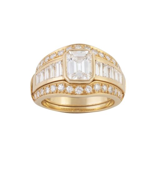 Sortija con diamante talla esmeralda de 1,31 ct aprox, con doble montura, desmontable