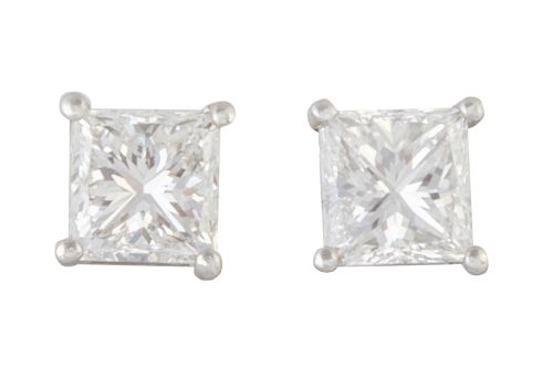 303. Pendientes dormilonas de diamantes talla princesa engastados en cuatro garras
