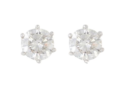 Pendientes dormilonas con brillantes de 1,36 y 1,26 ct respectivamente, engastados en seis garras