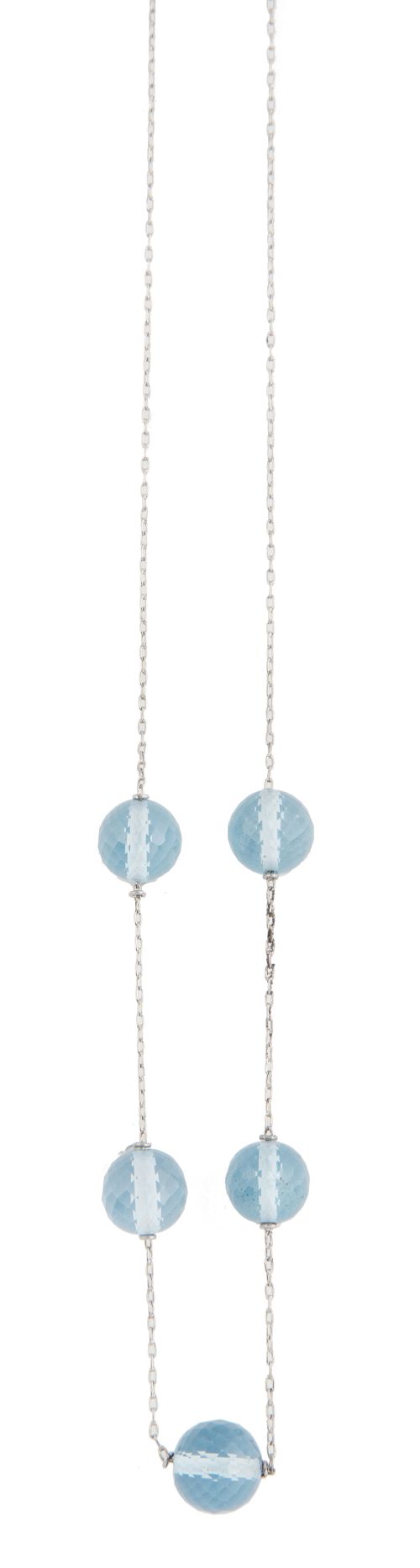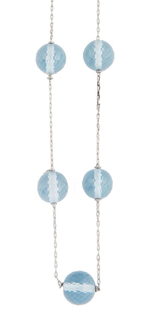 310. Collar con cinco esferas de topacios azules facetadas, alternos con tramos de cadena fina de platino
