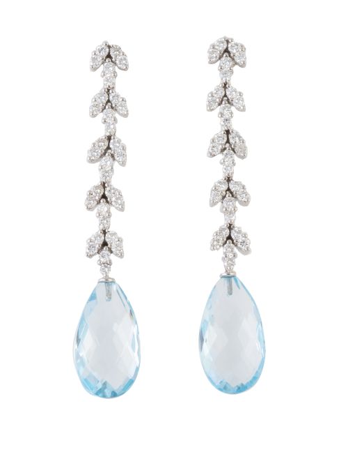 314. Pendientes largos con gotas de topacios azules colgantes de línea de hojitas de brillantes