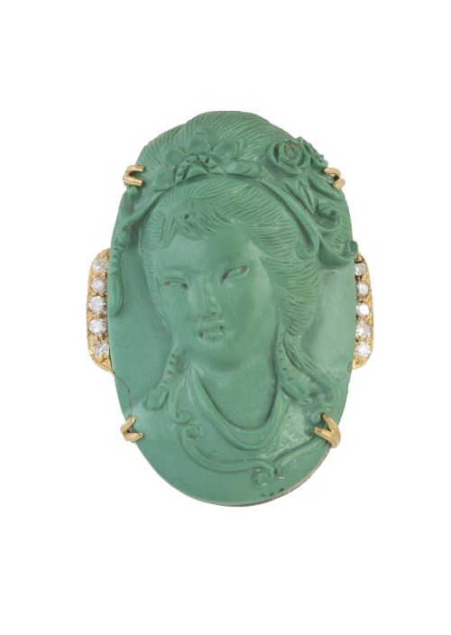 345. Sortija con gran centro de turquesa tallada con busto de dama oriental