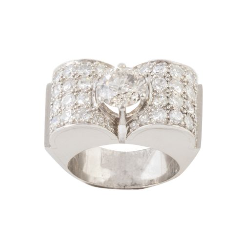 Sortija chevalier años 40 de brillantes, brillante central de talla antigua de 2 ct aprox