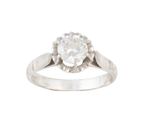 Sortija solitario con un brillante de 0,90 ct aprox en montura con orla ondulada