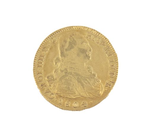 Moneda de 8 Escudos de Carlos IIII en oro, 1804. P. J.F.