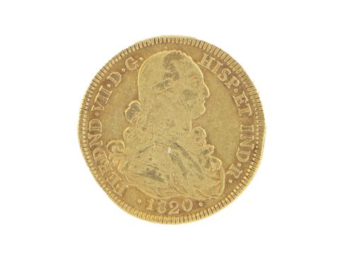 Moneda de 8 Escudos de Fernando VII en oro, 1820. NR. J.F.