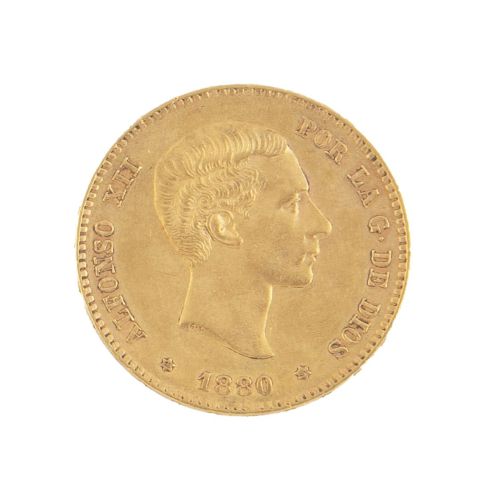 Moneda de 25 pesetas de Alfonso XII en oro, 1880