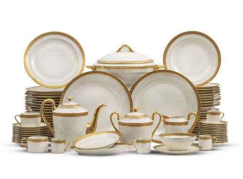 Home / SUBASTA DE JUNIO 2025 / Vajilla de porcelana esmaltada con filo dorado y en relieve