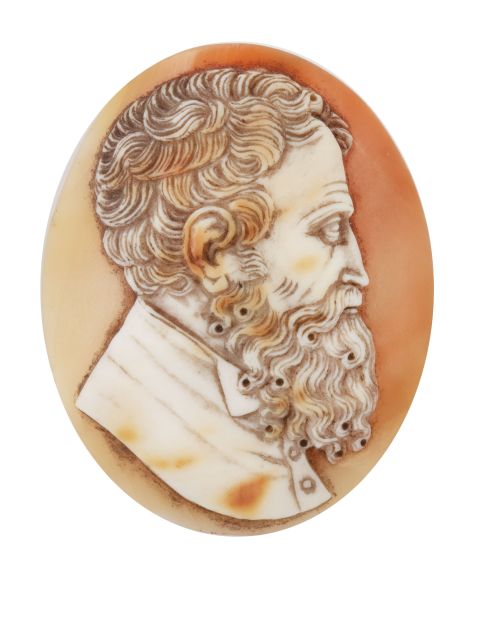 Camafeo S. XIX tallado en concha bicolor con perfil de caballero